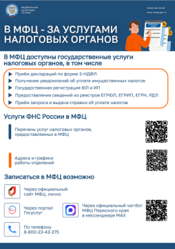 Инспекция напоминает жителям и организациям о возможности получения налоговых услуг через отделения Многофункциональных центров (МФЦ).